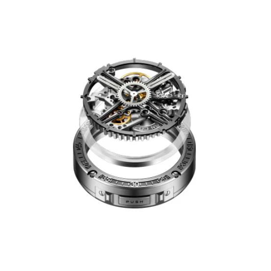 “在魔术表演中有一种‘悬浮术’,在一段时间里连现代超心理学家也无法破解这些漂浮现象,很有趣,假设能让机芯也悬浮于表壳之中,是否足以吸引眼球,使之呈现出大相径庭的视觉效果。”为了给用户带来“悬浮”的视觉体验,张建民先生采用了创新式的“悬浮式”机芯设计,利用三维结构的透明内罩,维护机芯稳定形态的同时,为用户呈现出宛如悬浮于空中的机械世界;并且在机芯外圈打造M系列独有的齿轮刻度,60个轮齿在保证基本的读时功能外,给用户带来机械艺术独有的造型体验及读时体验。